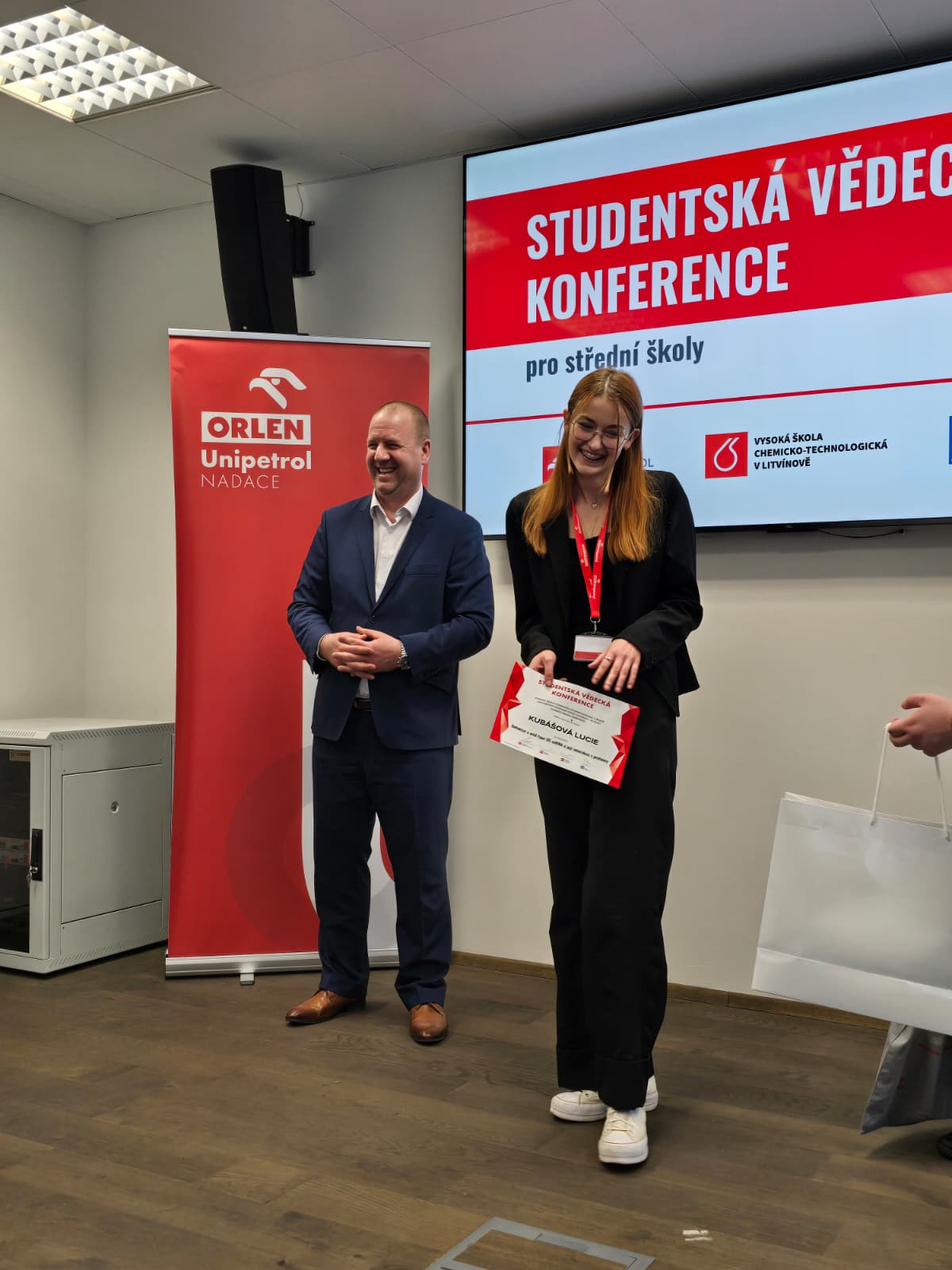 V pátek 10. dubna se studentka sexty Lucie Kubášová zúčastnila finále Studentské vědecké konference, kterou každoročně zaštiťuje Nadace ORLEN Unipetrol s cílem podpořit technické vzdělávání a prezentační dovednosti mladých badatelů. Finále proběhlo v Univerzitním centru VŠCHT Praha Litvínov – FS ČVUT – ORLEN Unipetrol (areál ORLEN Unipetrol Litvínov).