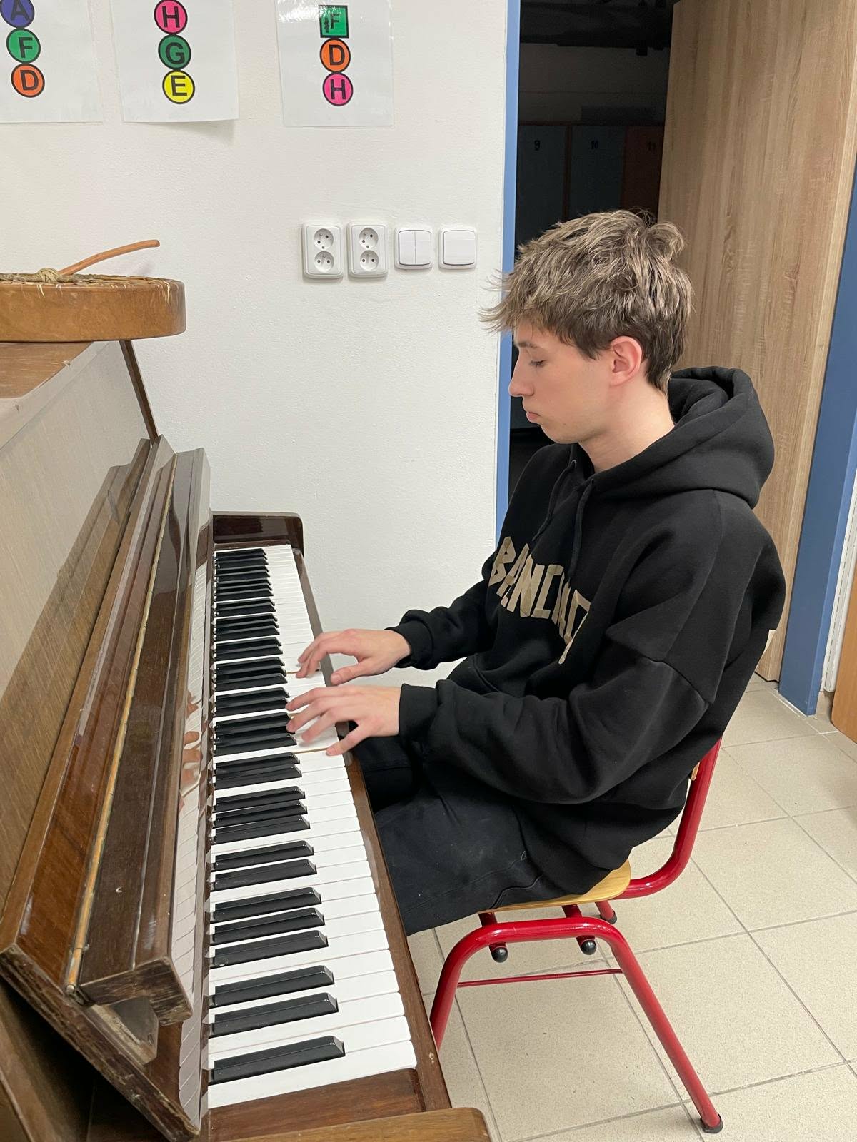 Ve středu 11. února 2026 se na naší škole uskutečnila neformální studentská akce s názvem Hudební setkání, která proměnila běžný den ve svátek tónů a dobré nálady. Studenti napříč ročníky předvedli svůj talent na trumpetu, klavír, bicí i kytaru a nechyběl ani zpěv, který dodal celé atmosféře energii a emoce.