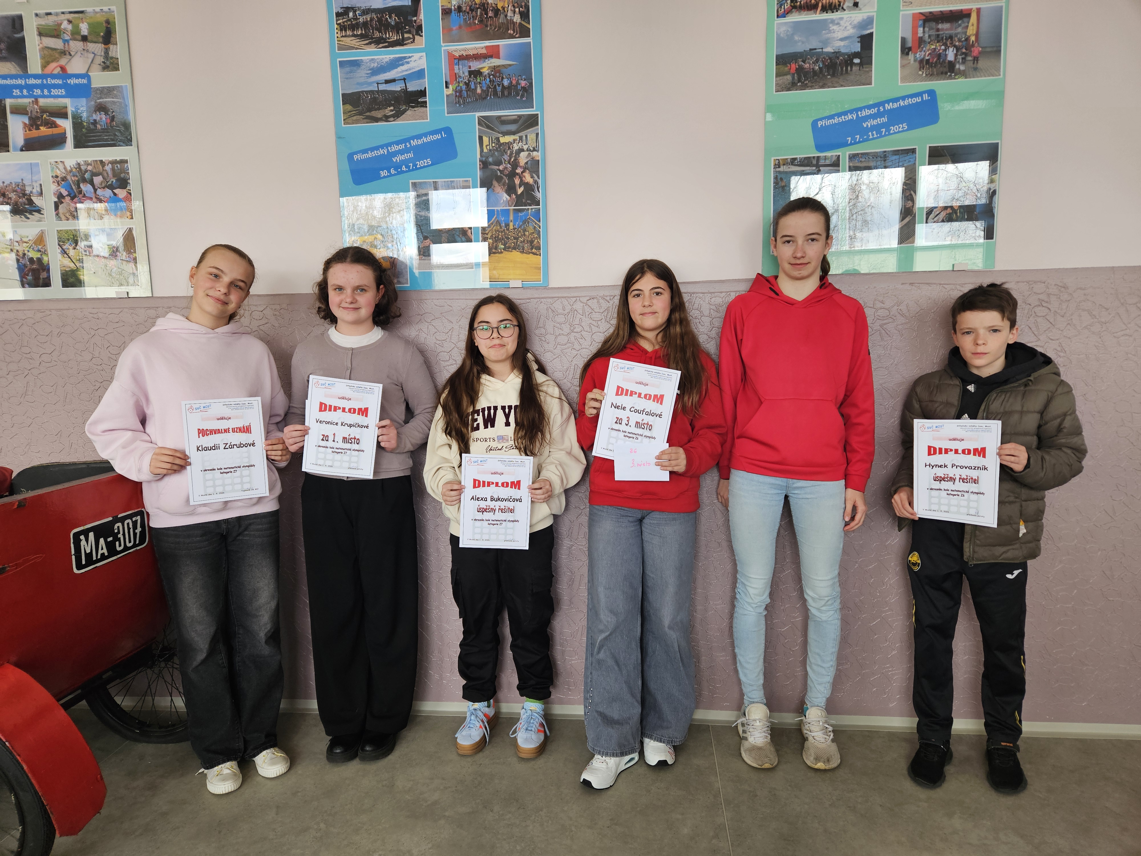 Dne 1. dubna 2026 se ve Středisku volného času v Mostě uskutečnilo okresní kolo Matematické olympiády (MO). Této soutěže se zúčastnili i naši žáci, kteří školu reprezentovali v kategoriích Z6 (prima), Z7 (sekunda) a Z8 (tercie).