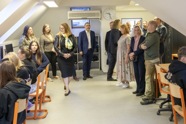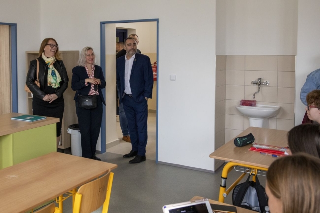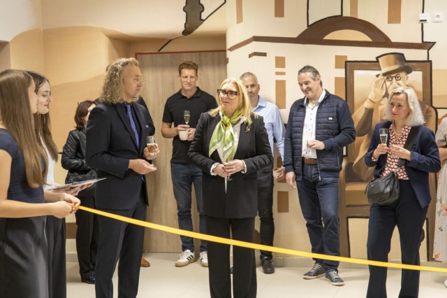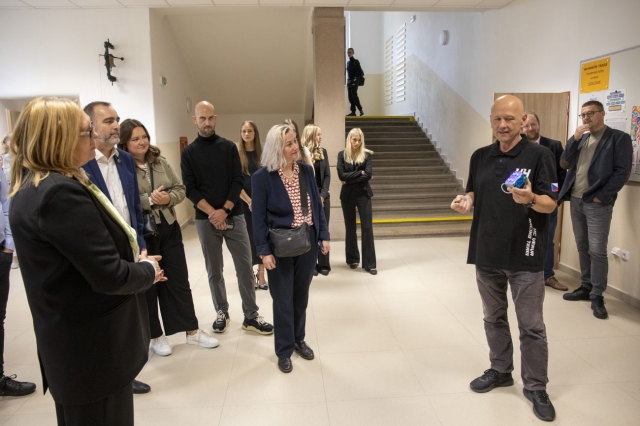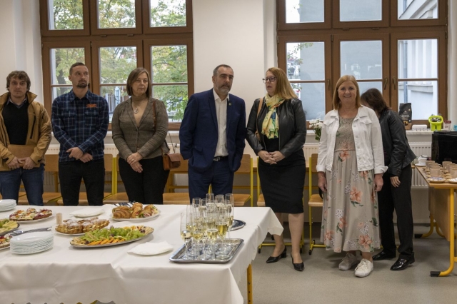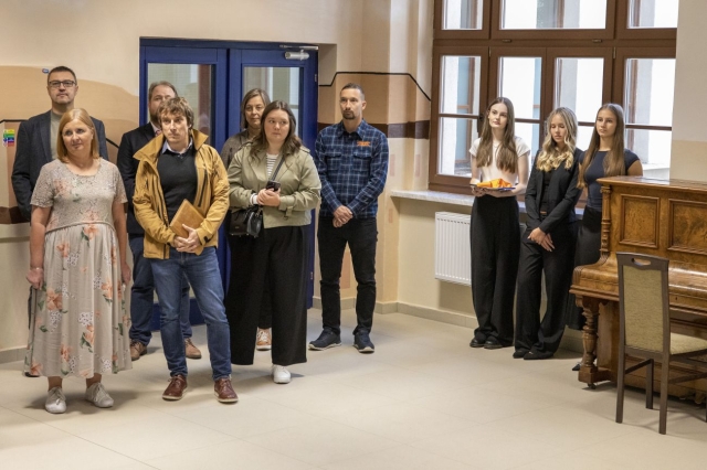 V úterý 23. září v dopoledních hodinách proběhlo slavnostní otevření zrekonstruované budovy našeho gymnázia. Této pro naši školu významné události se zúčastnili zástupci Ústeckého kraje v čele s 1. náměstkem hejtmana Ústeckého kraje paní Ing. Jindrou Zalabákovou, zástupci vedení města Litvínov, dále zástupci zhotovitelských firem a také zástupci z řad školské rady, Klubu přátel gymnázia a z řad vedení gymnázia a jeho studentů. Po slavnostních projevech shrnujících zásadní kroky, které vedly k úspěšné rekonstrukci, následovalo slavnostní přestřižení pásky a pozvání všech přítomných k prohlídce nového interiéru školy. Odpoledne se dveře gymnázia otevřely zájemcům z řad široké veřejnosti.