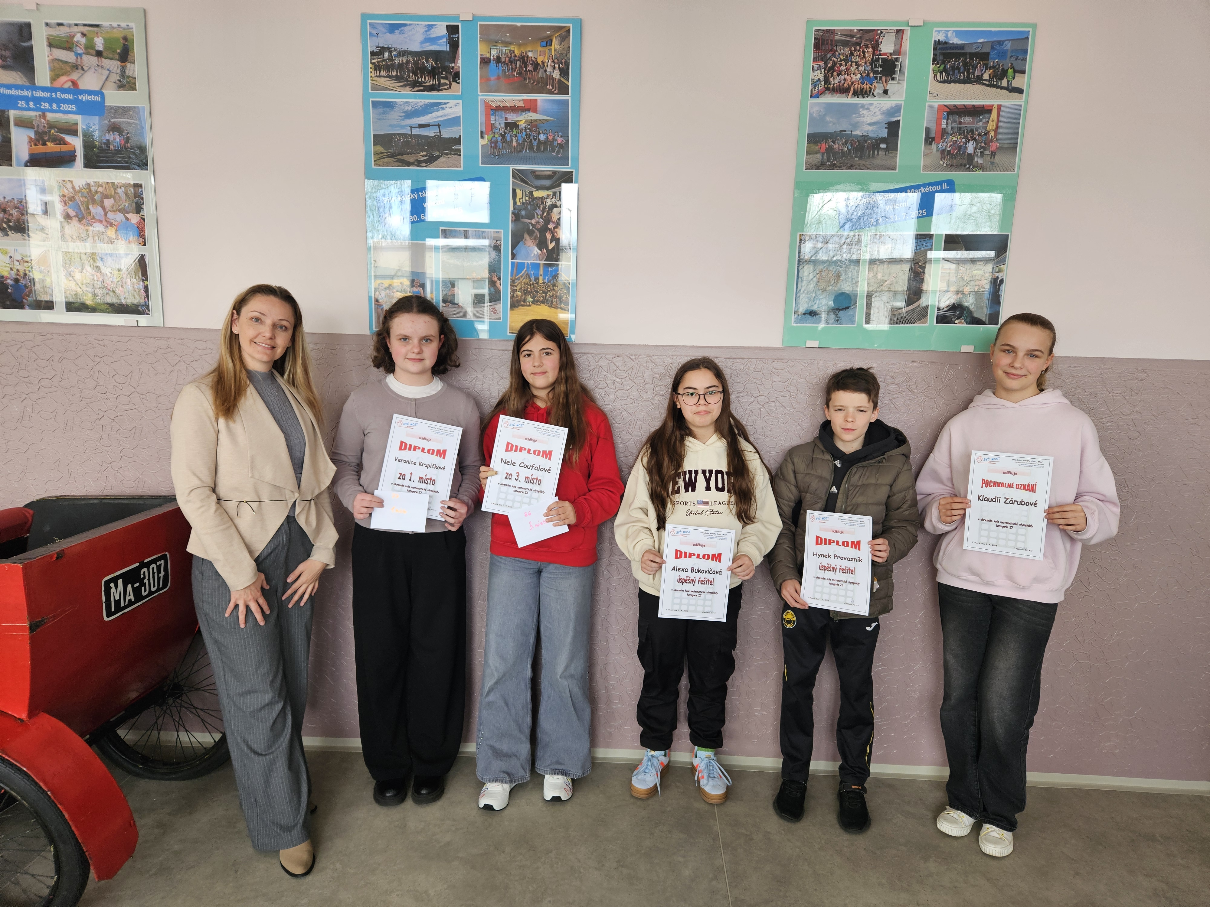 Dne 1. dubna 2026 se ve Středisku volného času v Mostě uskutečnilo okresní kolo Matematické olympiády (MO). Této soutěže se zúčastnili i naši žáci, kteří školu reprezentovali v kategoriích Z6 (prima), Z7 (sekunda) a Z8 (tercie).