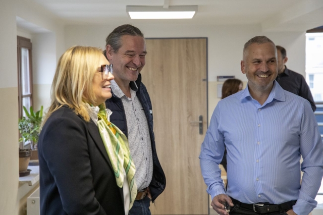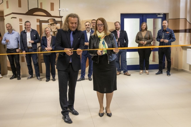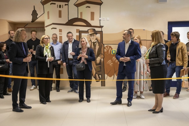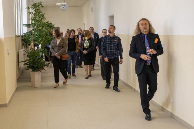 V úterý 23. září v dopoledních hodinách proběhlo slavnostní otevření zrekonstruované budovy našeho gymnázia. Této pro naši školu významné události se zúčastnili zástupci Ústeckého kraje v čele s 1. náměstkem hejtmana Ústeckého kraje paní Ing. Jindrou Zalabákovou, zástupci vedení města Litvínov, dále zástupci zhotovitelských firem a také zástupci z řad školské rady, Klubu přátel gymnázia a z řad vedení gymnázia a jeho studentů. Po slavnostních projevech shrnujících zásadní kroky, které vedly k úspěšné rekonstrukci, následovalo slavnostní přestřižení pásky a pozvání všech přítomných k prohlídce nového interiéru školy. Odpoledne se dveře gymnázia otevřely zájemcům z řad široké veřejnosti.