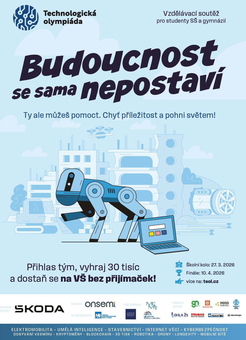 Naši studenti se zapojili do prestižní vědomostní soutěže Technologická olympiáda, která je zaměřena na rozvoj logického myšlení a orientace v moderních technologiích. Školního kola, které se uskutečnilo 27. března 2026, se zúčastnilo téměř 500 týmů z gymnázií a středních škol.